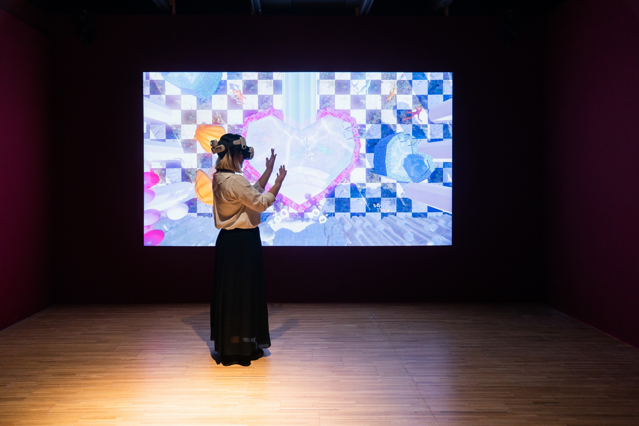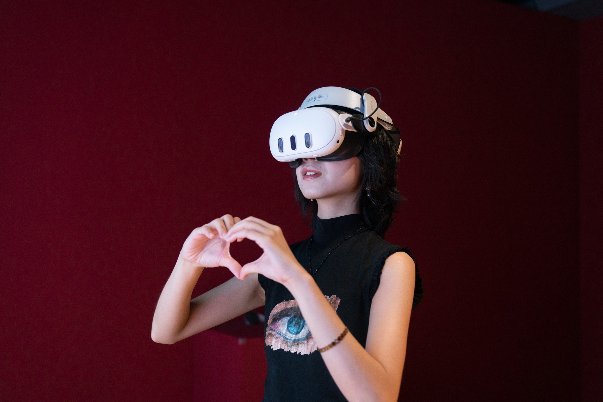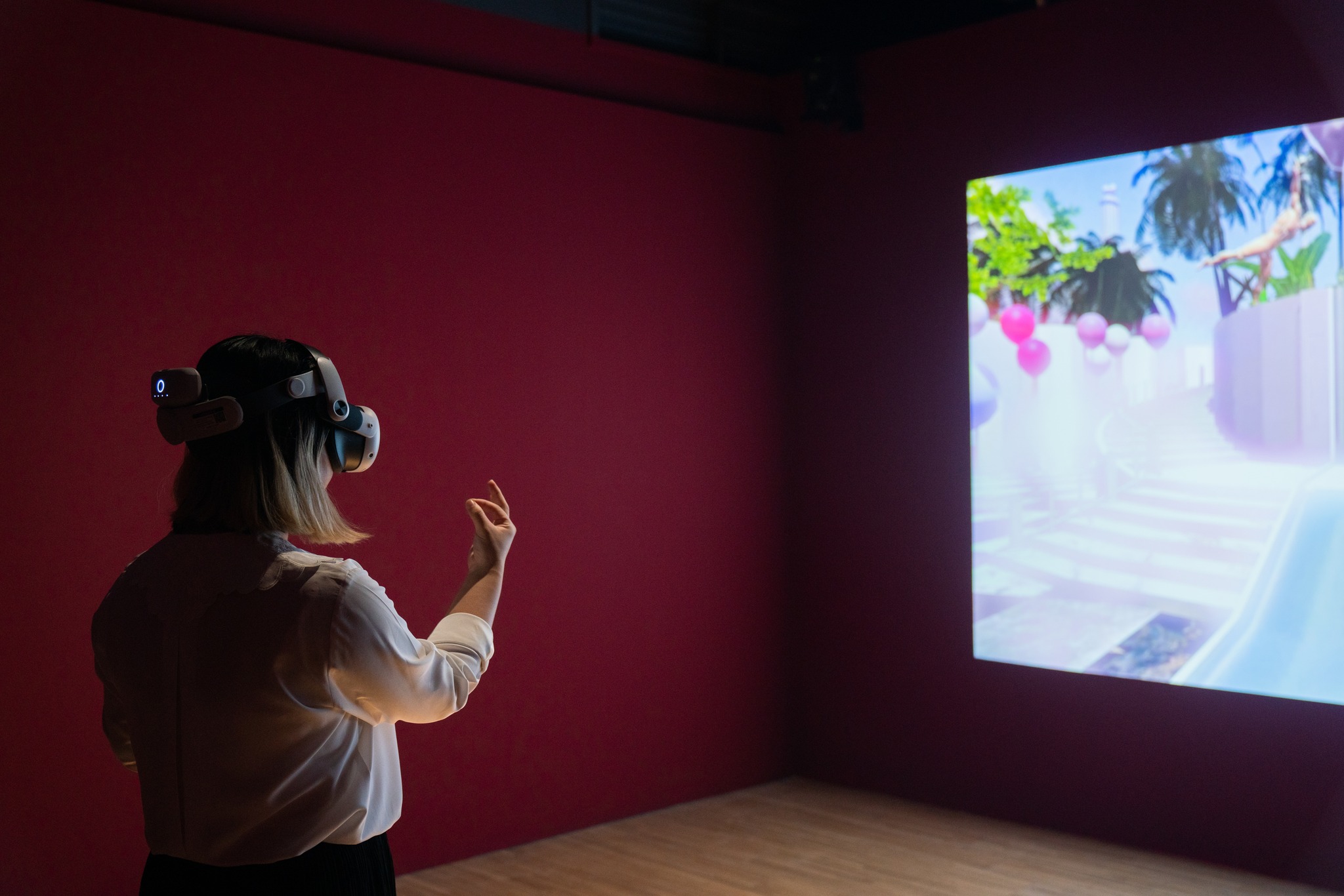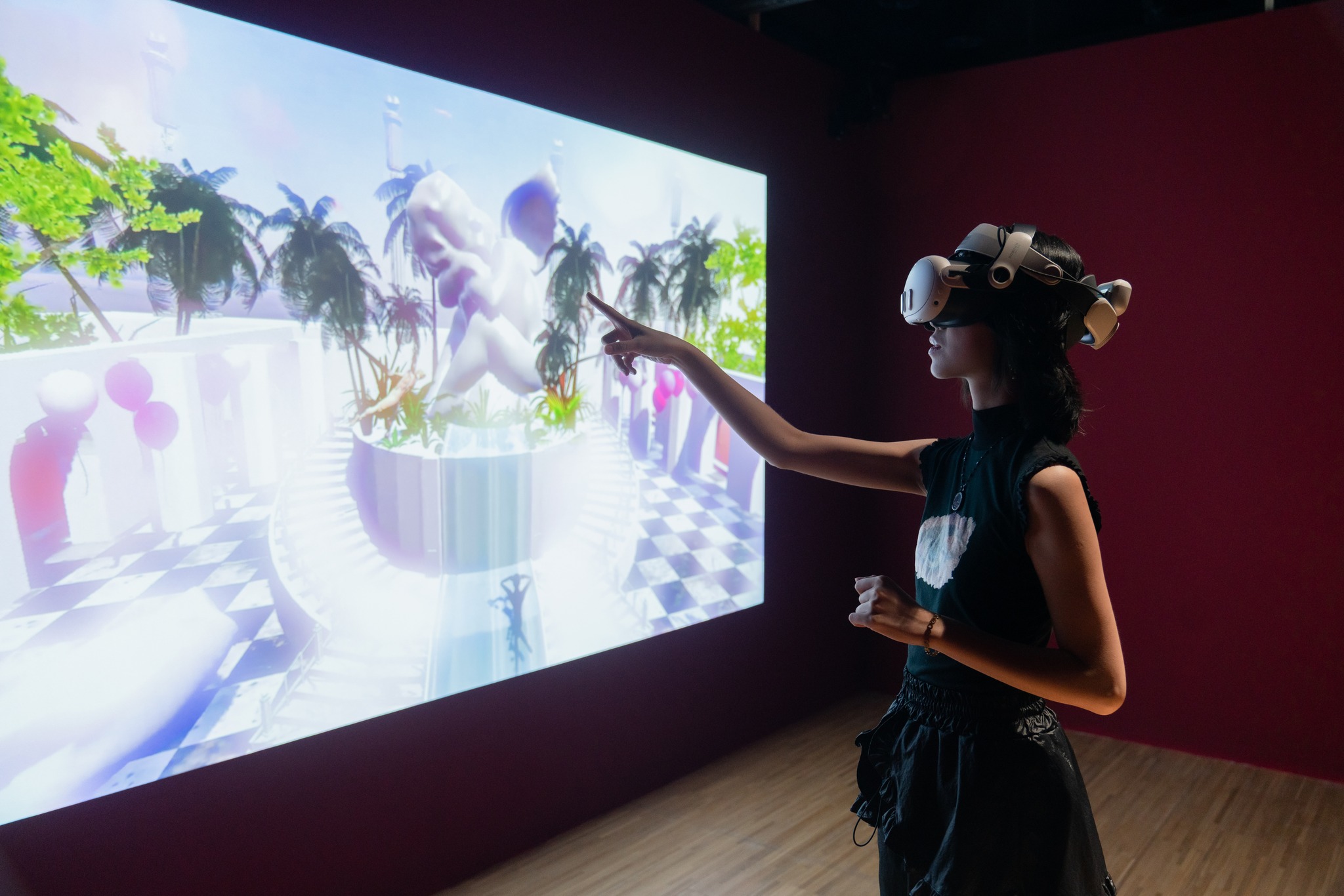 在VR體驗中,「手」不僅是感知與操控的延伸,更是觀眾沉浸於虛擬世界的核心媒介。《意識移居必須的手部配件》延續了好奇機2024年的《Paxville-意識移居》世界觀中「愛之池」的設定,在這裡人們可以改變自己的身體構造,達成不同於現實世界的感官體驗。而本作品《意識移居必須的手部配件》的場景設定於「愛之池」的「上游」,一個提供虛擬手套穿戴服務的環境,進一步探討當手被賦予了不同於物理世界的「新功能」時,如何能影響自身與外界的互動行為。
