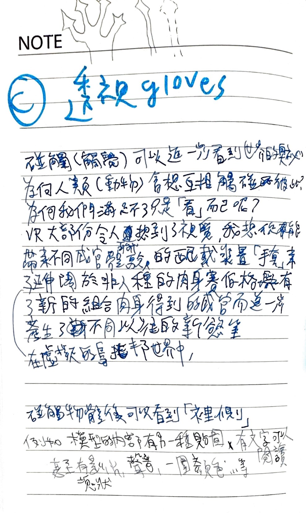 ⭢ 愛之池第一版本的想像圖,與手套設計手稿